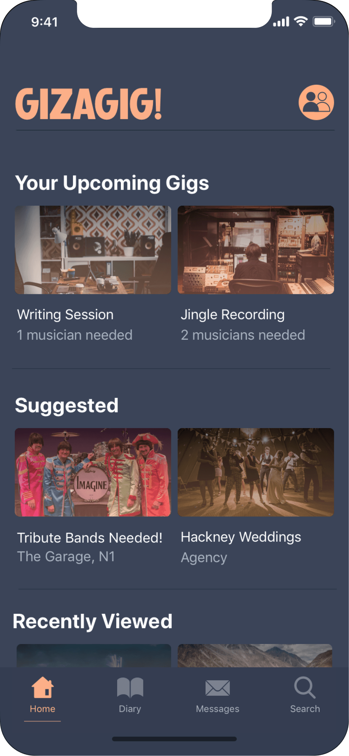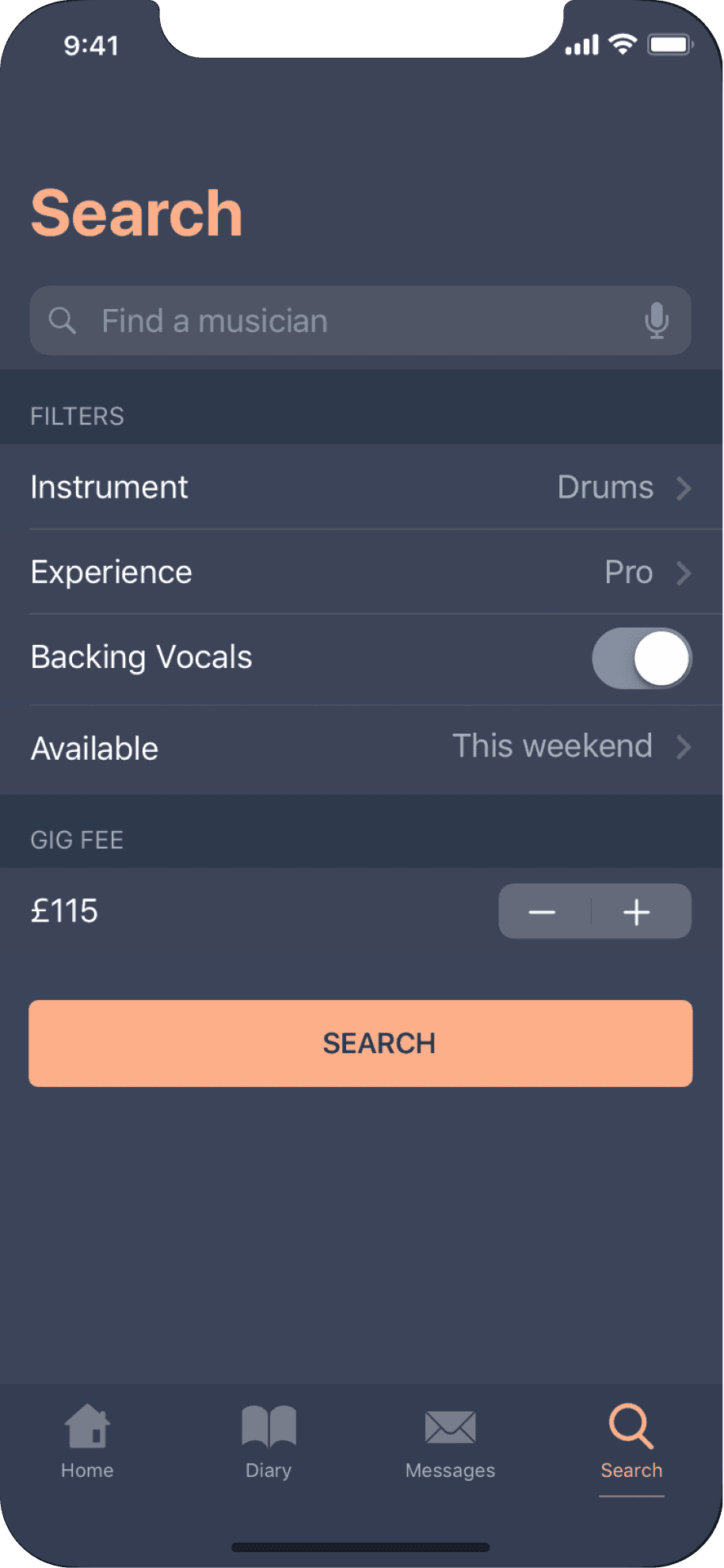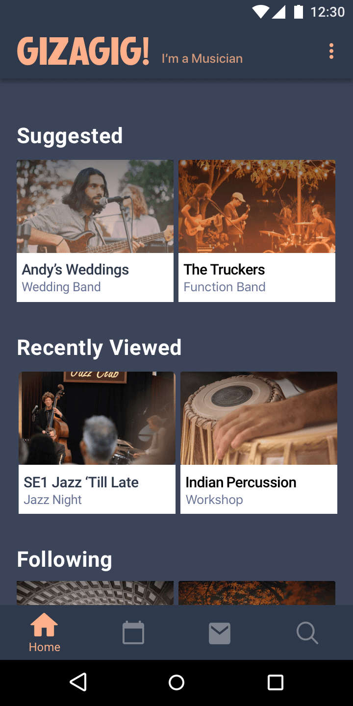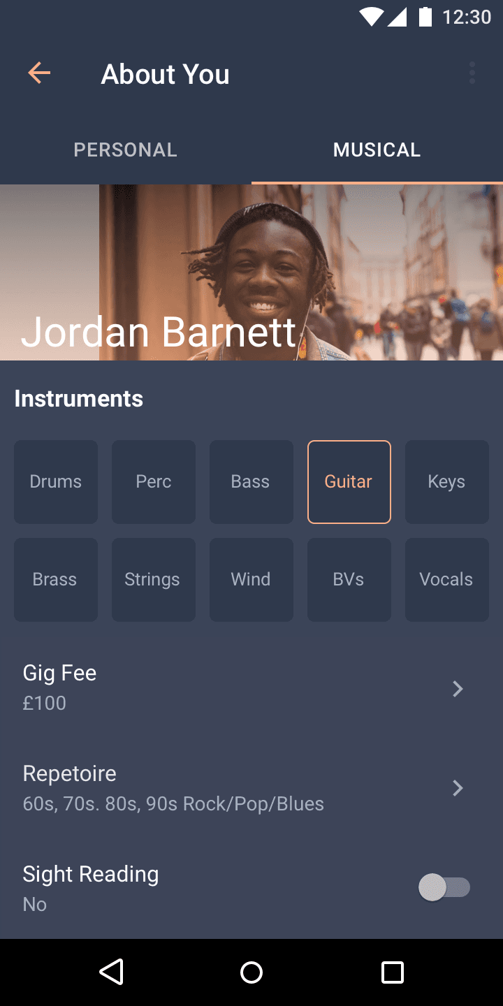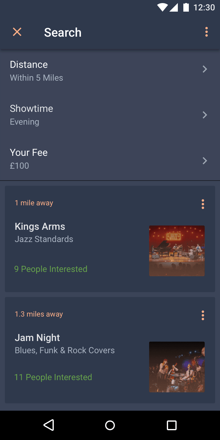 Design a native app – using both Android’s Material Design and Apple’s Human Interface Guidlines for iOS – that fuses networking with job searching for the live music scene.
