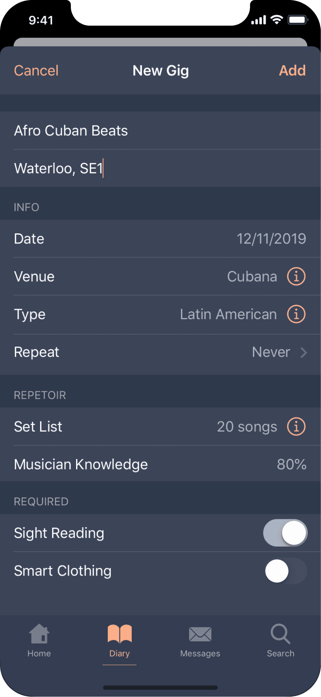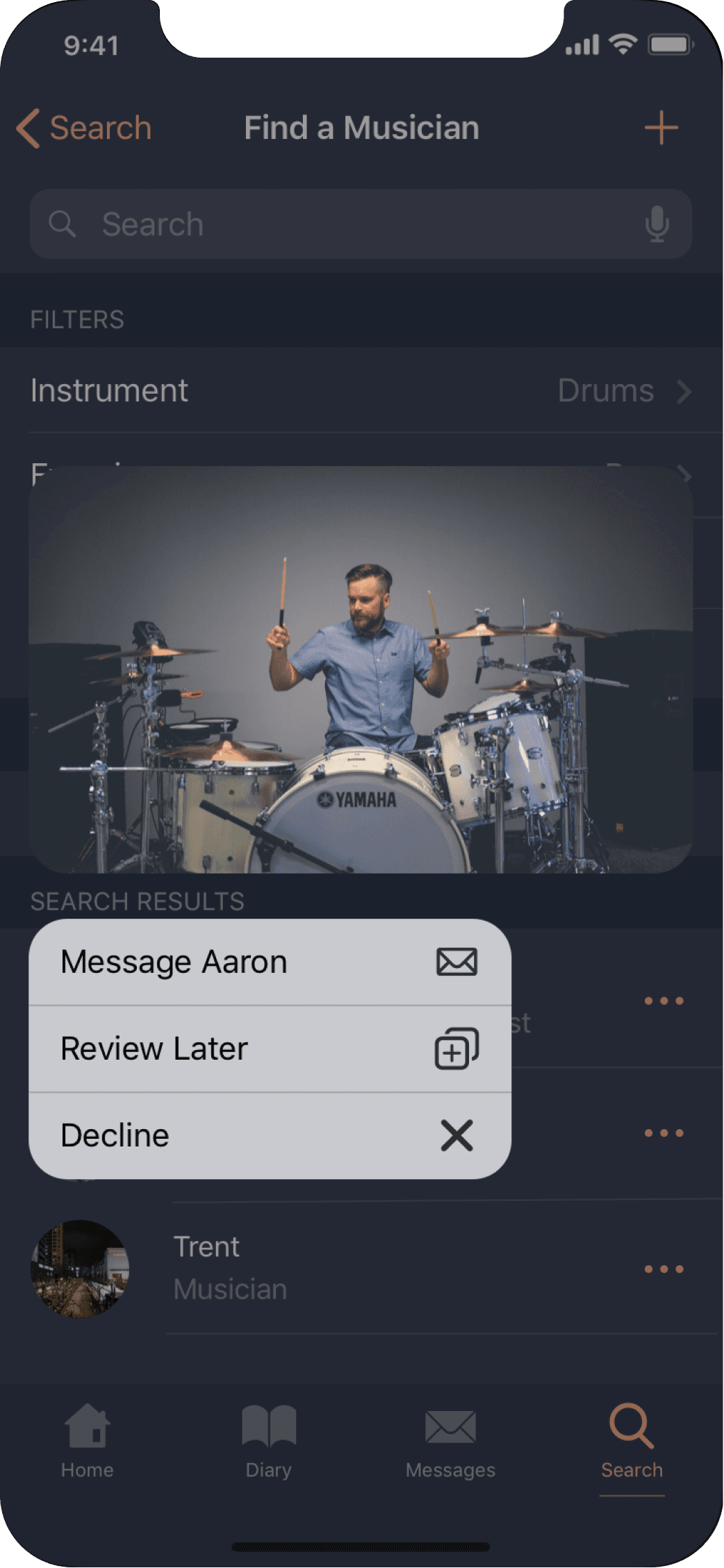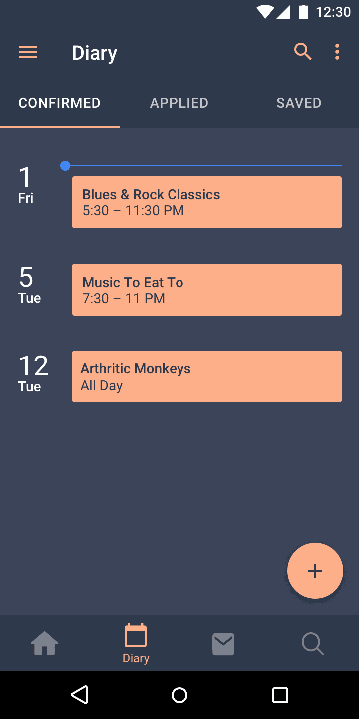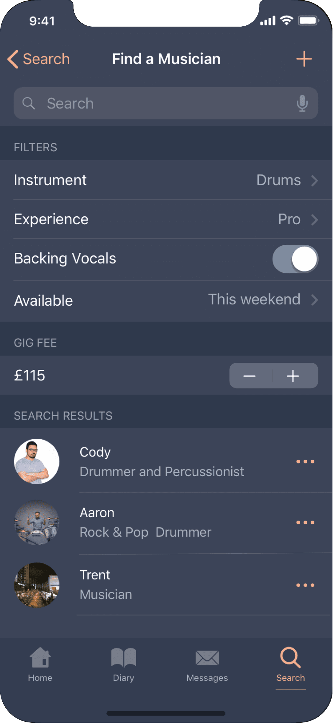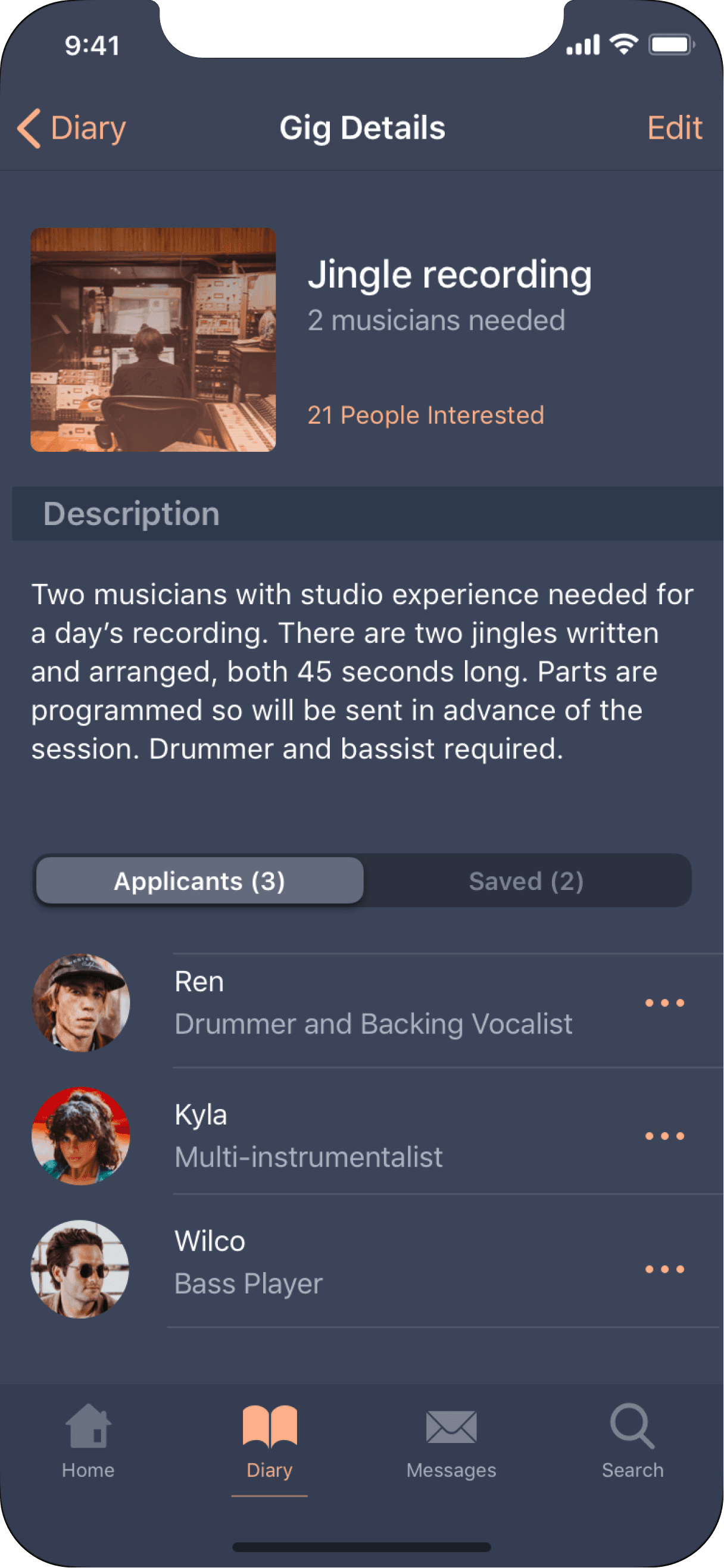 Design a native app – using both Android’s Material Design and Apple’s Human Interface Guidlines for iOS – that fuses networking with job searching for the live music scene.
